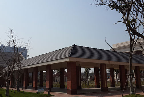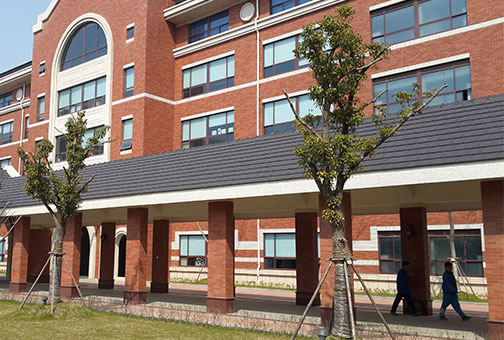 华东康桥新校舍使用原产法国的伊美瑞HP10黑色大平板瓦,平整美观,既有传统气息又有雅致的欧陆风格。